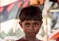 Portrait of a young boy, selling tomatos in Dhaka, Bangladesh.