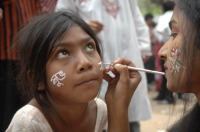 • Description: A woman smears her faces with colors...