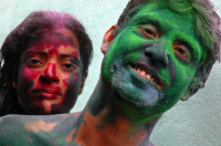 • Description: Portrait of a color smeared couple...