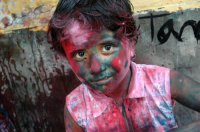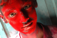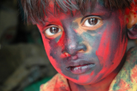 • Description: Portrait of a color smeared boy...