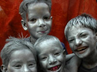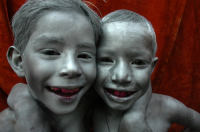 • Description: Portrait of two color smeared boys...