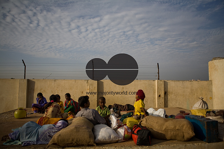 Distress Seasonal migrant family arrived from the North Karnataka Villages of India, and take rest near the new construction area in Bangalore.Bangalore is a fast growing e-commerce city. Buildings and sky scrapers are constructed in every where in the city. Flyovers are being built to accommodate high level of traffic and Metro rail project and in order to raise these structures.