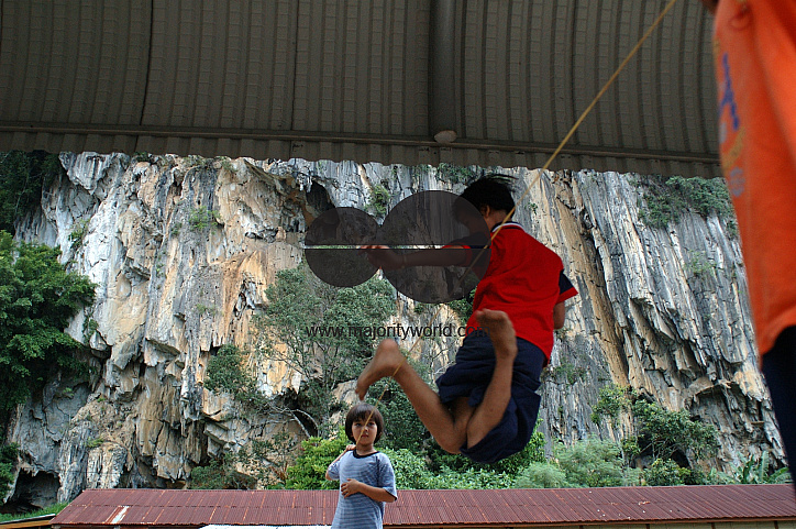 Gua Musang train station is built in the shadow of a limestone outcrop that dwarfs the town. There are 12 daily departures from Musang. At the end of each day, children play games while adults relax on the station platform, trying to catch the evening breeze.