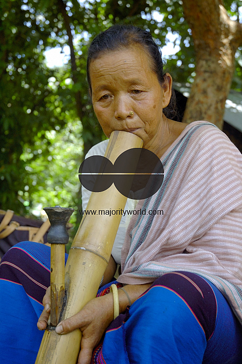 Portrait of a Chakma tribal woman. The Chakma are a tribe inhabiting the Chittagong hill tracts of Bangladesh. Their population of 300,000 is concentrated in the Rangamati and Khagrachhari districts of Chittagong Division in Bangladesh. Rangamati, Bangladesh. August 17, 2006.