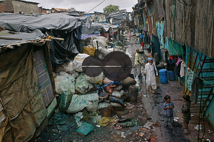 An old man strolls along a water pipe in Dharavi slums. Home to over a million people, Dharavi, considered to be one of Asia's largest slums is a heart-shaped settlement in central Mumbai spread over an area of 1.75 km. Authorities in India's financial capital invited a global tender early June 2007 to tear down the slums and replace it with gleaming new apartments, but the project is a suspect in the eyes of most of its habitants. The development program includes 100 billion rupees ($2.48 billion) in seven years to develop Dharavi. India, June 20, 2007.