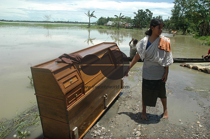 Household items being shifted to a safer place in the flood affected Bhakatgaon in Dhemaji district of Assam, 500 km away from Guwahati. on Sunday, July 15, 2007. A total of 120 villages and more than forty thousand families have been affected in the flash flood caused by the heavy rainfall Arunachal Pradesh. The flood water also washed away few portion of National Highway No. 52 as a result of Dhemaji district and few parts of Arunachal Pradesh is totally cut off with rest of the country since July 12th. India.