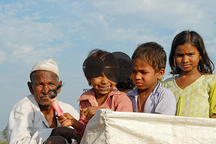 A family arrives on a bullock cart for a village fair, known as "Haat", at a village near Nagpur, Maharashtra, India. Jaunuary 28, 2007.