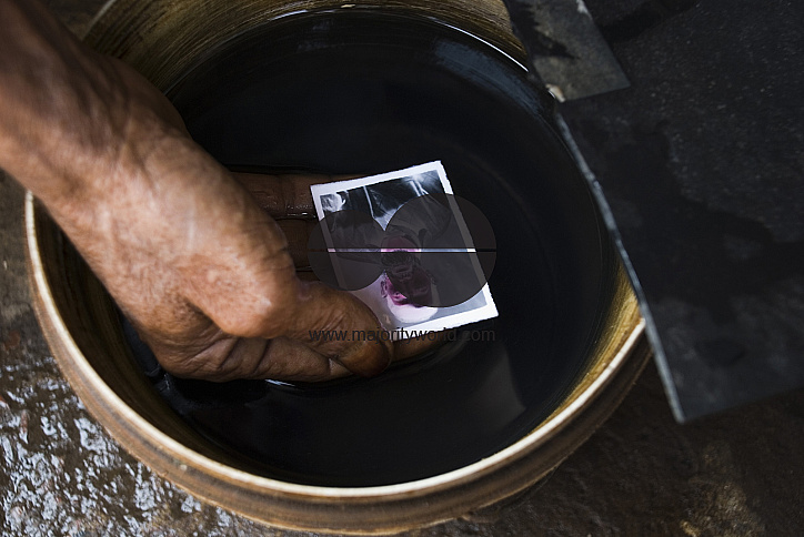 Abdur Rashid is a photographer. For the past 40 years he has been taking photographs with a box camera near Khulna police station. His customers are those who want their photos quickly. Khulna, Bangladesh. February 17, 2008.
