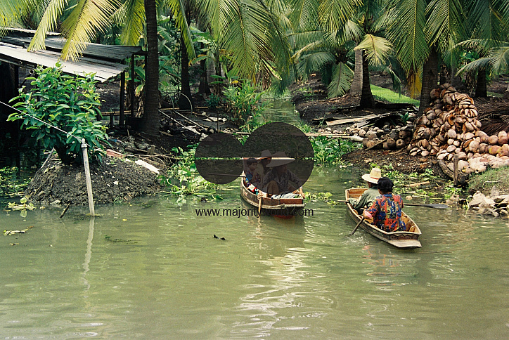Tha-ka floating market is an ancient floating market that is hidden in the shades of palm orchards. It has existed along side the district of Amphawa and the province of Samutrsongkram for over a century. Samutrsongkram, Thailand. June 1, 2000.