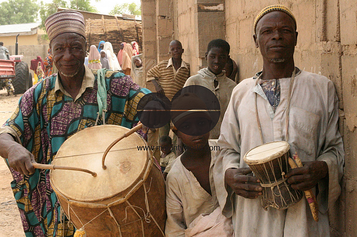 Street musicians in Shinkafi, a town in Zamfara state in northern Nigeria. Most of the people who live her are poor, living below US$1 a day. Hausa is spoken as the first language of the state, which is also the first state to have introduced Muslim sharia law. "Farming is our pride" is the slogan of the state, which is largely agricultural. April 12, 2008.