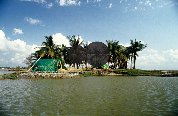 Temporary shelters for the cyclone affected people, on the bank of Sangu river, in Banshkhali upazila of Chittagong district, in Bangladesh. 1991. The 1991 cyclone was one of the deadliest tropical cyclones on record that struck Bangladesh. The cyclone hit the southeastern district of Chittagong on the night of 29th April with winds around 250 kilometers per hour. There was a 6 meters storm surge over a wide area, killing at least 138,000 people and leaving as many as 10 million homeless. Source: www.wikipedia.com
