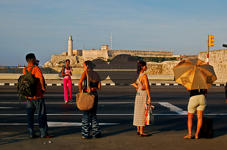 A group of people waiting for the bus. Havana, Cuba. November 27, 2007. Officially known as Ciudad de La Habana, it is the capital city, major port, and leading commercial centre of Cuba. The city is one of the 14 Cuban provinces. There are about 2.4 mill