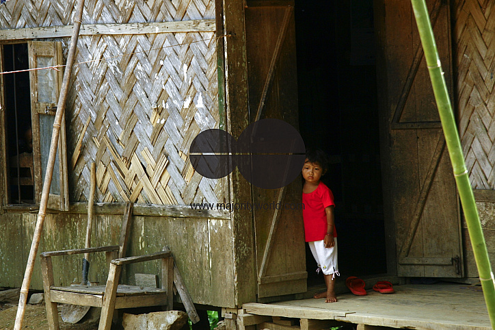 An ethnic child standing at the door of her home in Khagrachari, one of the hill districts under Chittagong division, in Bangladesh. Locally known as Chengmi, Khagrachari is a valley. It has three rivers namely Chengi, Kasalong and Maini. The ethnic people living in the area depend on Jhum cultivation for food crops round the year. June 5, 2009.