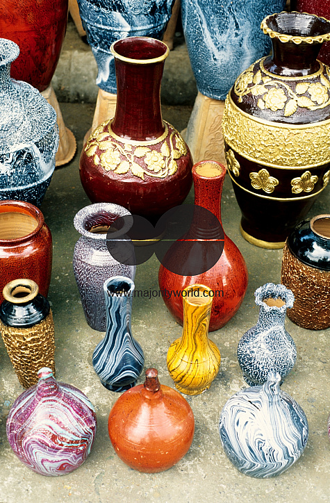 Colourful earthenware like pots, jars and vases enhance the beauty of city households. Besides, it is a source of livelihood to many potters. Bangladesh.