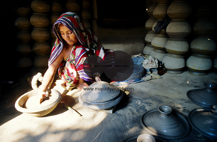 Potteries are set to dry in sun. Colourful earthenware like pots, jars, and vases enhance the beauty of city household. Besides, it is a source of livelihood to many potters. Bangladesh.