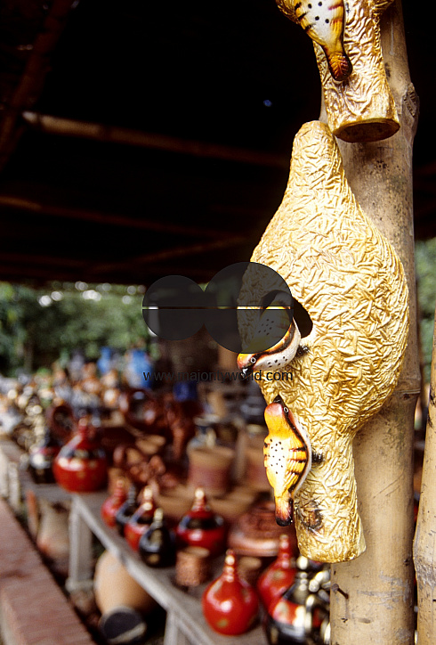 Earthenware and showpieces are displayed for sale. Vendors with colourful earthenware like pots, jars, and vases enhance the beauty of city households. Besides, it is a source of livelihood to many potters. Bangladesh.