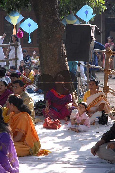 People come together at the Institute of Fine Arts to enjoy the celebrations of Nobanno (Harvest Festival) in the month of November. Dhaka, Bangladesh.