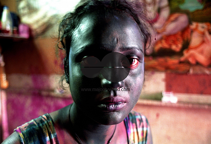 Inebriation on the day of Holi, the Hindu spring festival of colours turns Sumi introspective. Her red-rimmed eyes gaze into a future that seems to fade like a chimera. She is successful in her work but it does not bring her fulfilment. Portrayed as wild and a devourer of men, the lines of her face exude confusion, vulnerability and deep poignant sorrow. Kolkata, India, March 14, 2006.