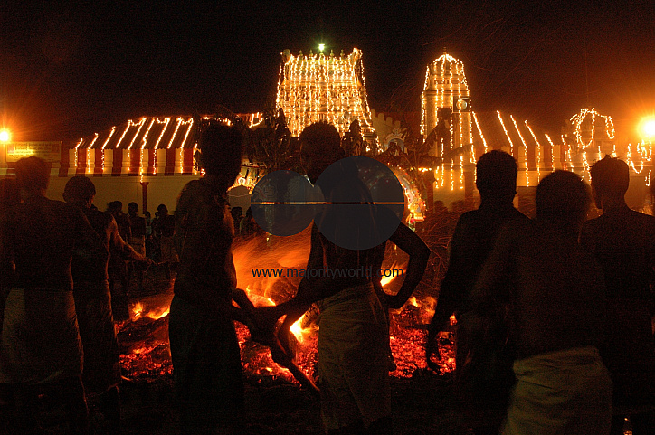 Udappuwa festival, the preparation for the fire walking. The pit is prepared. The burning wood leveled, the embers shaped into a rectangular pit. Sri Lanka. 2006.