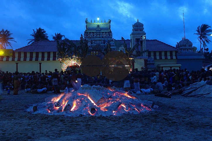 Udappuwa festival, the preparation for the fire walking. The pit is prepared. The burning wood leveled, the embers shaped into a rectangular pit. Sri Lanka. 2006.