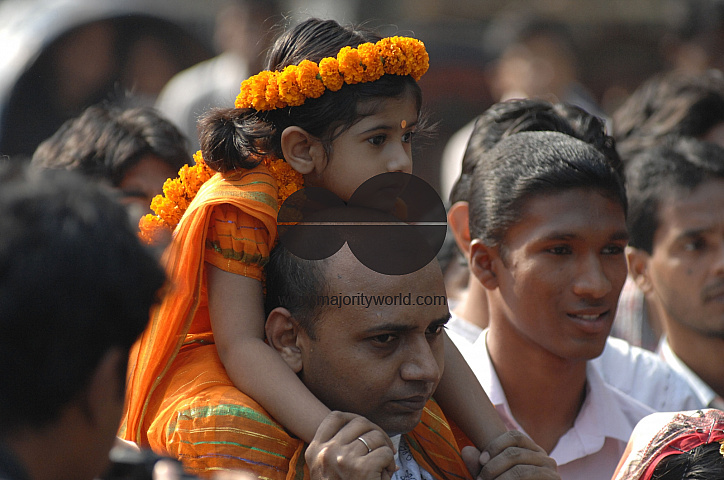 Portrait of father and child at a gathering at the Fine Art Institute of Dhaka University on the occasion of Nabanna Utsab (Harvest Festival). Dhaka, Bangladesh. November 24, 2006.
