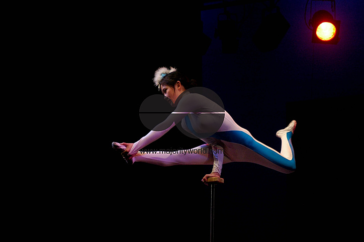 A Chinese acrobat performs at the Shilpokala Academy, Dhaka, on a cultural exchange program between China and Bangladesh. March 3, 2006.