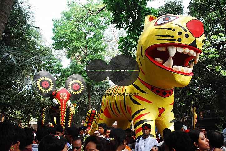 Bangladeshi people celebrating the Bangla new year 1414. The day is celebrated with traditional gaiety and fanfare all over the country. Dhaka, Bangladesh. April 14, 2007. .