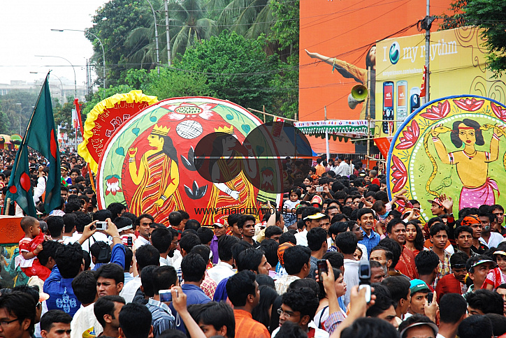 Bangladeshi people celebrating the Bangla new year 1414. The day is celebrated with traditional gaiety and fanfare all over the country. Dhaka, Bangladesh. April 14, 2007. .