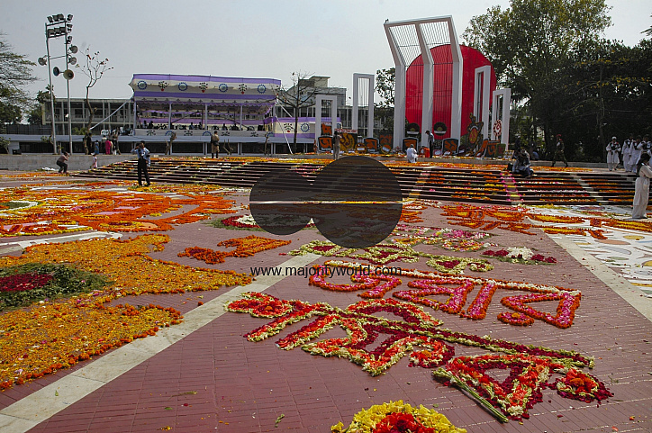 The Central Shahid Minar, a monument for the martyrs of the 1952 language movement in Dhaka, is covered with flowers on International Mother Language Day. On February 21, 1952, a number of students campaigning for the recognition of Bangla as one of the s