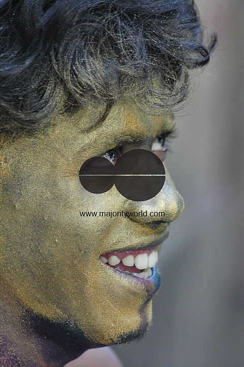 A man in the midst of the Color Festival of Holi in Old Dhaka. The colorful festival of Holi is celebrated in late February or early March. Dhaka, Bangladesh. March 4, 2007.