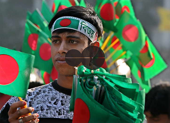 A vendor sells National flag during "Victory Day" celebrations at the National Memorial in Saver on the outskirts of Dhaka, Bangladesh. December 16, 2007.