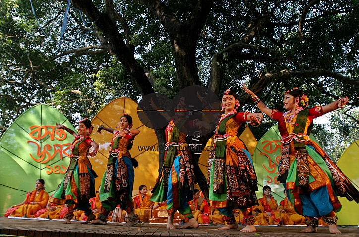 Dancers performing to celebrate the first day of Basanto, the spring season, at the Institute of Fine Arts of Dhaka University. Also marking Pahela Falgun, the first day of the Bangla month Falgun, the festival is celebrated with much colour and gaiety th