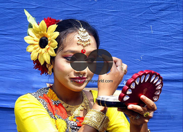 A girl from indigenous community takes make up for the festival of Pahela Baishakh, the Bangla New Year 1414. Chittagong, Bangladesh. April 13, 2007.