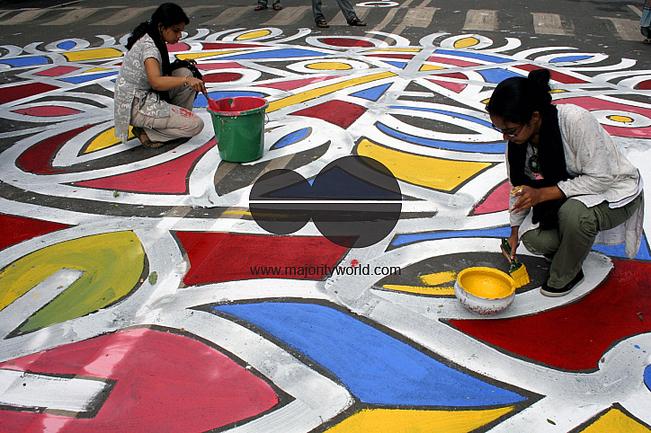 Students of Dhaka University paint the road in front of Central Shaheed Minar, language movement martyrs monument, ahead of Shaheed Dibosh and International Mother Language Day on 21st February. Dhaka, Bangladesh. February19, 2008.