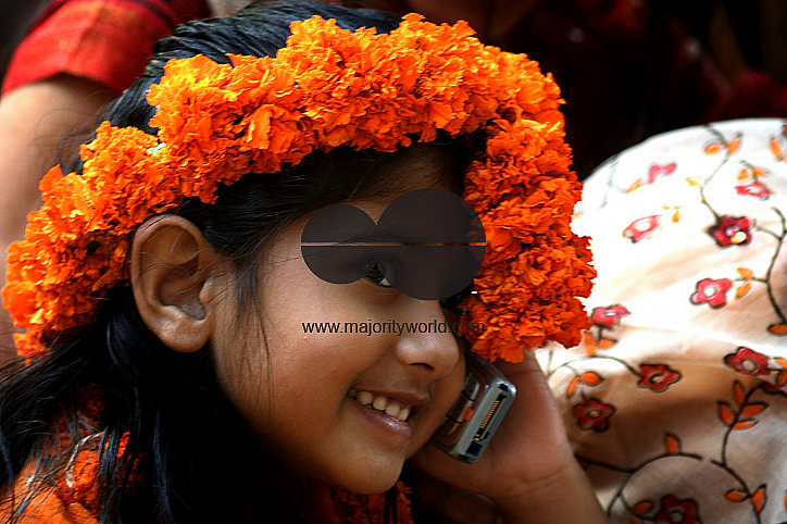 A girl child on ‘Basanta Utsav’, or Basanta festival, celebrating the Bengali month of Falgoon, at the Art Institute of Dhaka University in Dhaka, Bangladesh. February 13, 2008.