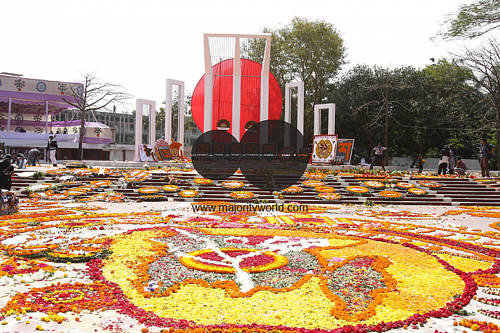 The flower bedecked Central Shaheed Minar, marking the 21st February and International Mother Language Day, in Dhaka, Bangladesh. February 21, 2008. This monument commemorates the students and others killed in the historic language movement on February 21