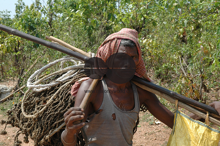 A tribal man returns from jungle during in a hunting festival in the Ayodhya hills.of Purulia district,India. Tribal people participate in the festival which takes place every year on the birth day of the Lord Buddha. Although the law prevents hunting of wild animals, this ritual is allowed to continue to respect the tribal tradition.