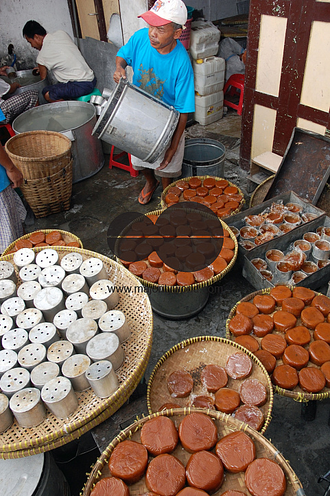 A home-based business run by Indonesian Chinese preparing traditional cakes popular during Chinese New Year. Yogyakarta, Indonesia. Feb 2008. .
