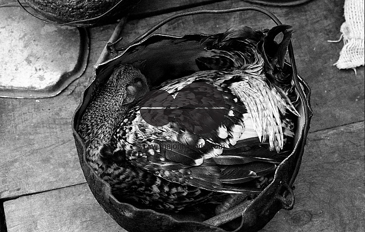 A chicken for cooking. The chicken will be boiled in water. After that the feathers are easy to take away. Vinal Pozo, Santiago del Estero, Argentina. June 2009.