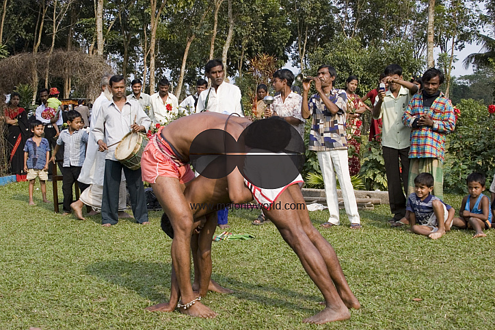 A performnace of gymnastics.These kinds of performances takes place in the rural parts of the country for entertaining people. Tangail, Bangladesh.
