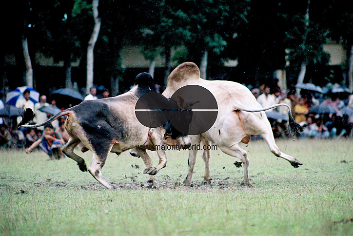 Shar larai (Oxfighting) is one of the traditional festival in Bangladesh. It is held every year on 15th May. Many people come to enjoy this game from distant places. Although there are risks of injury but people enjoy it a lot. Harikhali Terokhada, Khulna, Bangladesh. May 15, 2005.