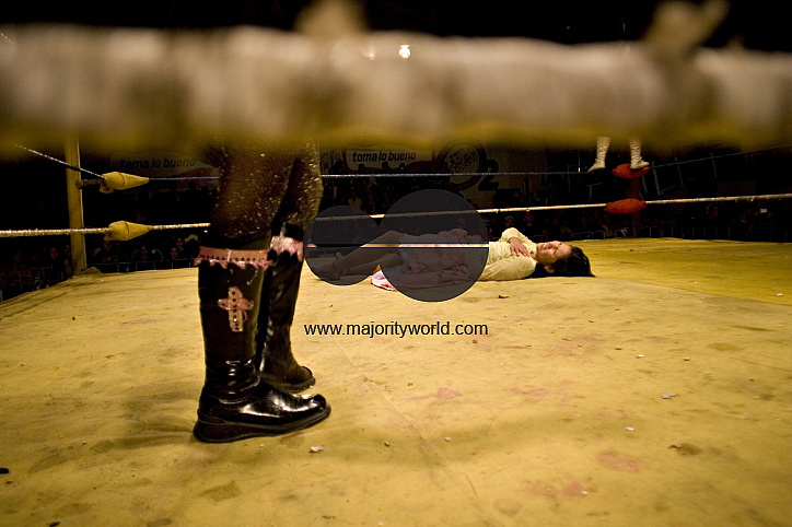 "Cholitas" Wrestling, traditional Aymara women, fight each Sunday in the poor City of El Alto, next to the Capital City of La Paz. El Alto, Bolivia. April 21, 2007.