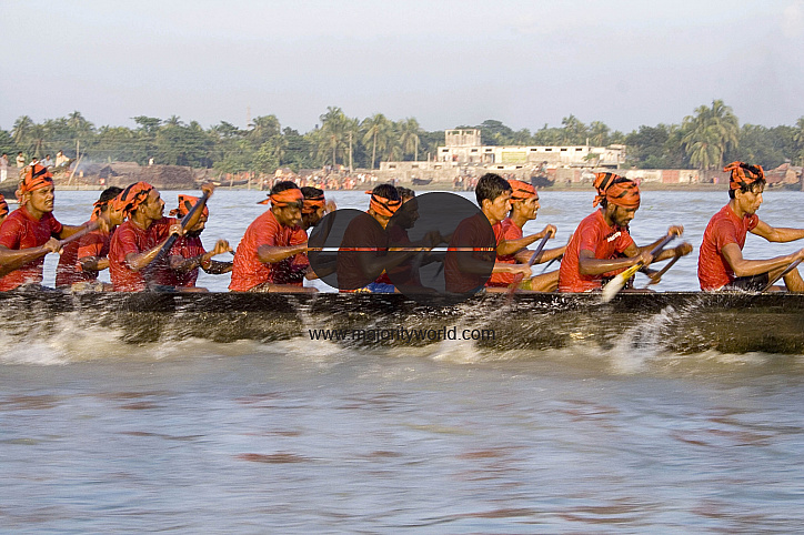 Traditional Boat Race known as Nouka Baich in the River Vairab in Khulna, Bangladesh. The race was sponsored by Bangla Link a telecom company. October 27, 2007.
