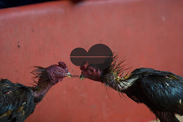 Heads of fighting cocks in Sukothai, Thailand. January 19, 2007. Cock fighting is a traditional pastime that many Thais consider an integral part of rural life. Thailand. January 20, 2007.