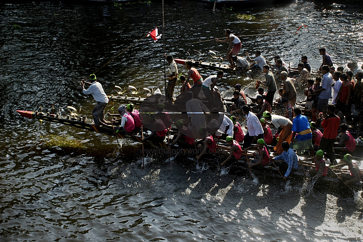 A boat race, held as a part of the festivity of the post Laxmi puja festival, at Kaliganj, in Gopalganj, Bangladesh. October 15, 2008.