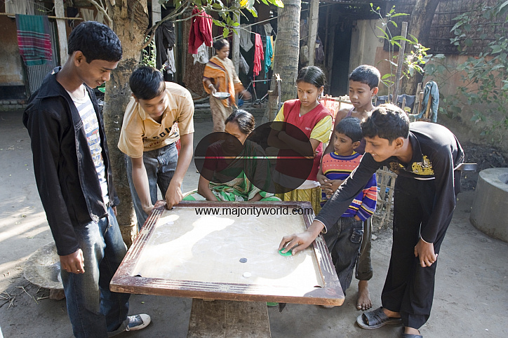 Bangladeshi rural family members play caroms at their house courtyard at Tajhaat village, outskirts of Rangpur Town. Rangpur, Bangladesh, December 10, 2008.
