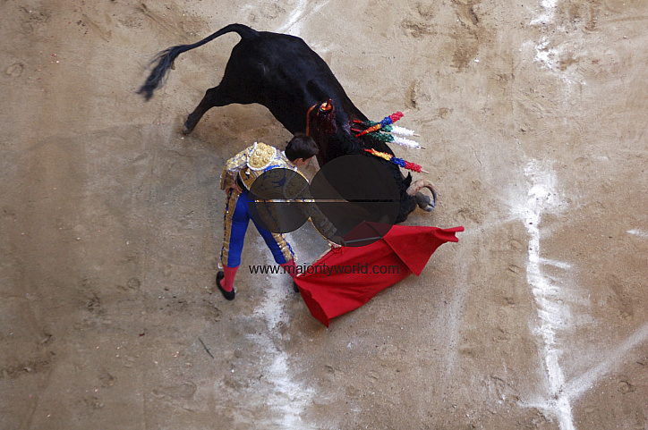 The traditional spectacle of bullfighting, in La Macarena bullring, in Medellin, Colombia. February, 2007. Medellin, Colombias second largest city has a variety of traditional festivals and Feria Taurina de La Macarena or Bull Fighting Fair is one of them. The fair is held at La Macarena bullring, the only roofed bullring in the continent. Matadors (bull fighters) from all over the world come to show off their skills and the party spills over to local bars, restaurants and the Zona Rosa.