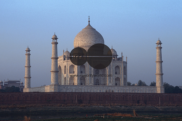 A frontal view of Taj Mahal, a grand shrine constructed by Moghul Emperor Shahjehan in the memory of her famous queen Noorjehan in Agra City, India.
