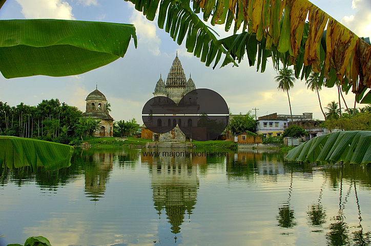 Siva Temple at Puthia. The Shiva Temple, a 19.81m square building, was erected by Rani Bhuvan Mohini Devi in 1823 AD on a high plinth and plastered all over. It is decorated with numerous miniature gems (ratnas) on the main tower and on the four smaller towers on the roof of the ground floor. Puthia, Rajshahi, Bangladesh. September 6, 2006. (Source-Banglapedia).