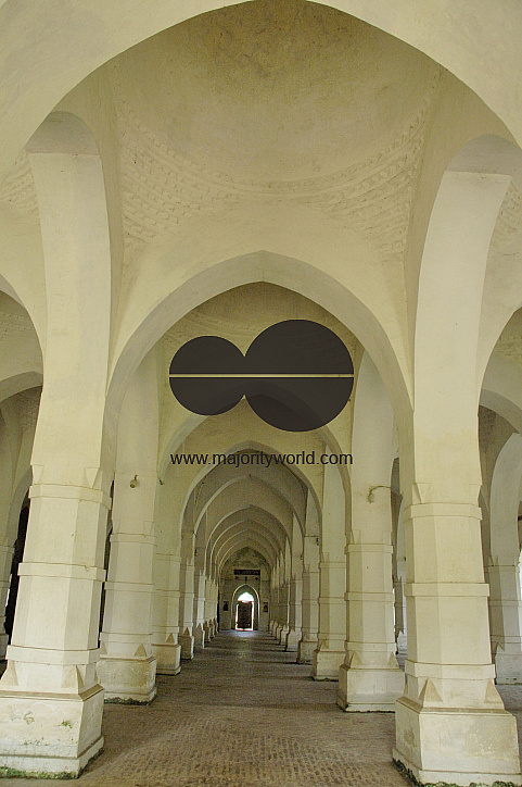 Interior of the Sixty Pillar Mosque more commonly known as Shat Gumbad Mosque or Saith Gunbad Masjid is the largest historical mosque in Bangladesh and one of the most impressive Muslim architectural structures on the Indian Subcontinent. It is located in